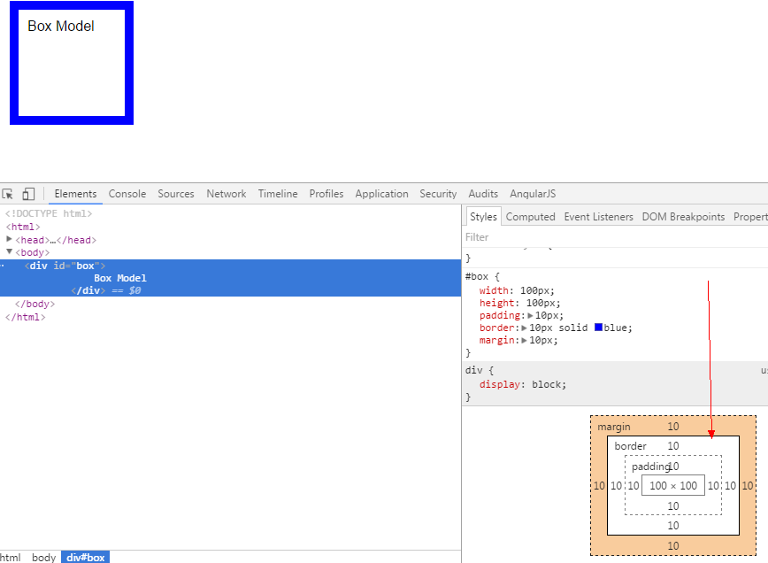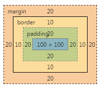 content-box: padding和border不被包含在定义的width和height之内。对象的实际宽度等于设置的width值和border、padding之和,即 ( Element width = width + border + padding,但占有页面位置还要加上margin ) 此属性表现为标准模式下的盒模型。