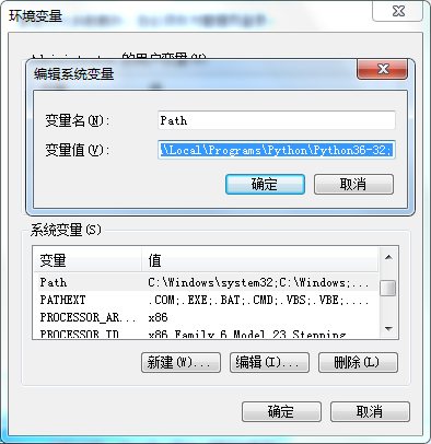 在控制面板的高级系统设置中点击环境变量,找到path变量,在其末尾输入安装Python的路径:C:\Users\Administrator\AppData\Local\Programs\Python\Python36-32\Scripts