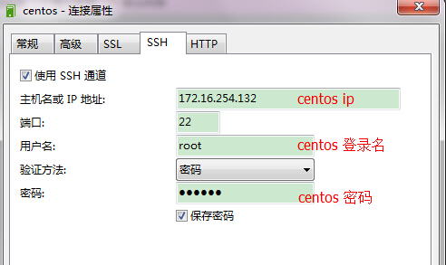 用SSH通道访问 , 新建连接时配置如下 (两张图解释)
