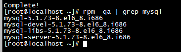 安装完成后可再次查询 # rpm -qa | grep mysql 可发现如图: