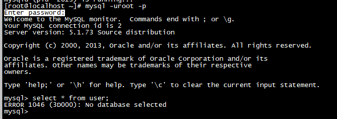 (2)mysql> update user set password=password('qwe123') where user='root'; #修改密码