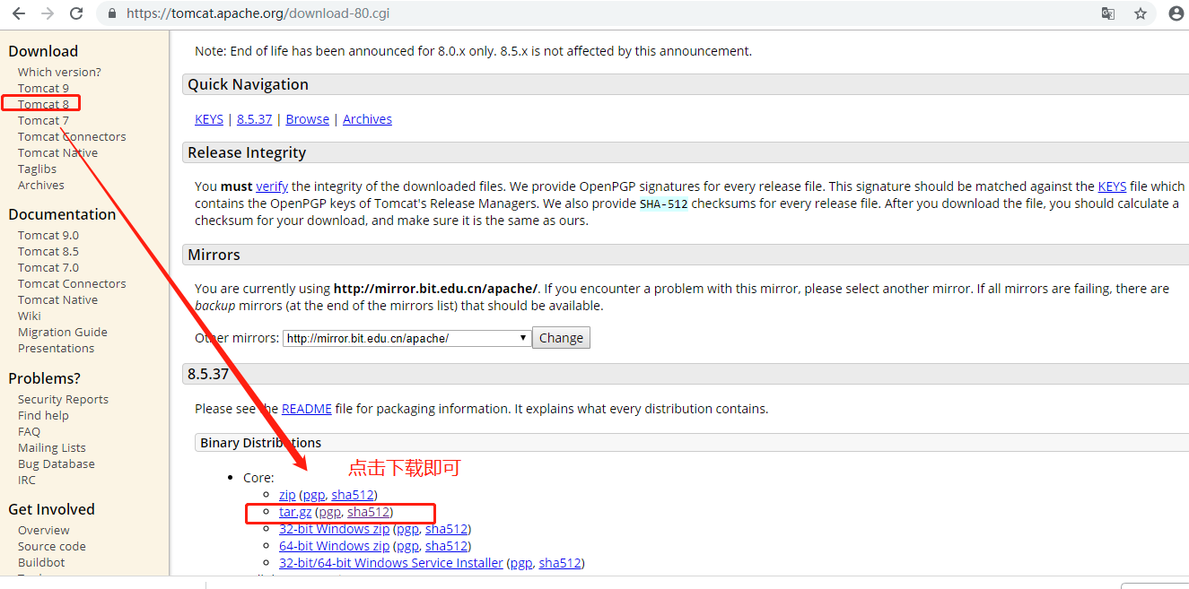 1、下载tomcat8 Apache Tomcat® - Apache Tomcat 8 Software Downloads