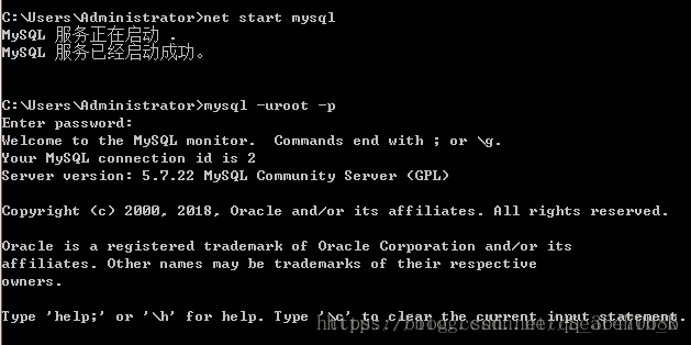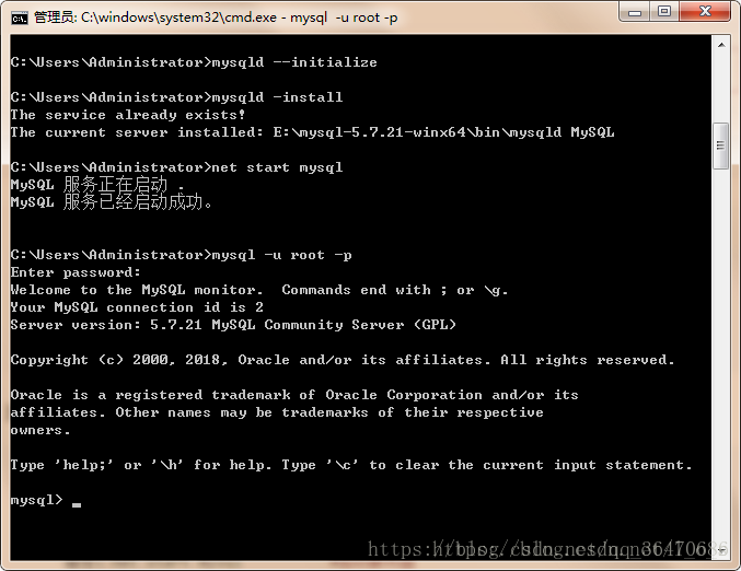 命令:net start mysql #启动服务器
