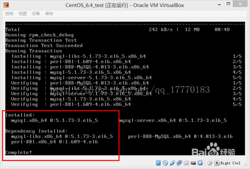 yum -y install mysql-server mysql mysql-devel ,命令将:mysql-server、mysql、mysql-devel都安装好,当结果显示为“Complete!”即安装完毕。