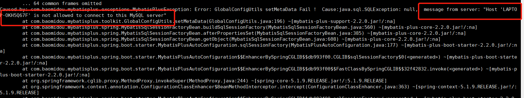 Cause:java.sql.SQLException: null, message from server: "Host 'LAPTOP-OKH5Q67F' is not allowed to connect to this MySQL server"
