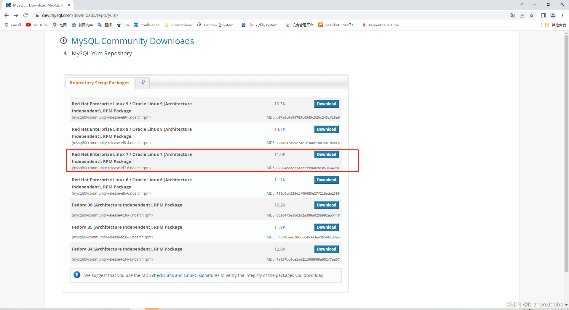 wget https://dev.mysql.com/get/mysql80-community-release-el7-6.noarch.rpm(复制下来的链接)