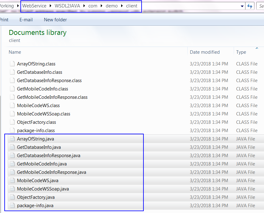 C:Program FilesIBMSQLLIBjavajdkbin>wsimport -keep -p com.demo.client -d C:UsersIBM_ADMINDocumentsMyWorkingWebServiceWSDL2JAVA http://ws.webxml.com.cn/WebServices/MobileCodeWS.asmx?WSDL