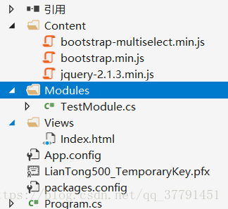 我们在项目下创建Modules和Views文件夹,Modules就像MVC的Controller用来控制管理处理请求返回View中的页面(一般是.html,.cshtml,.htm文件)