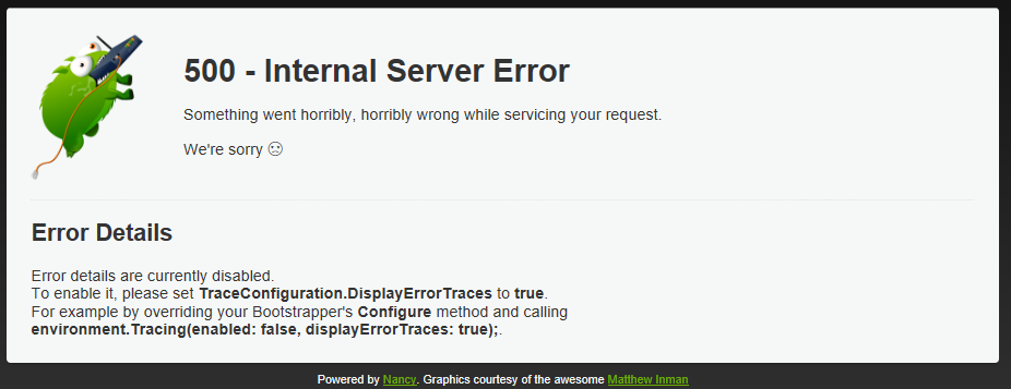 environment.Tracing(enabled: true, displayErrorTraces: true);