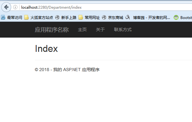 默认的路由规则是Controllers/action/id ,id是可选属性,所以我们请求http://localhost:2280/Department/index就可以访问。