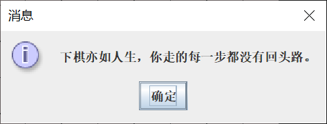 JOptionPane.showMessageDialog(this, "下棋亦如人生,你走的每一步都没有回头路。");
