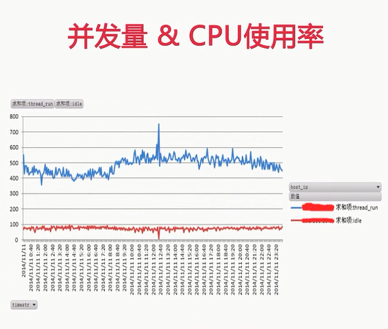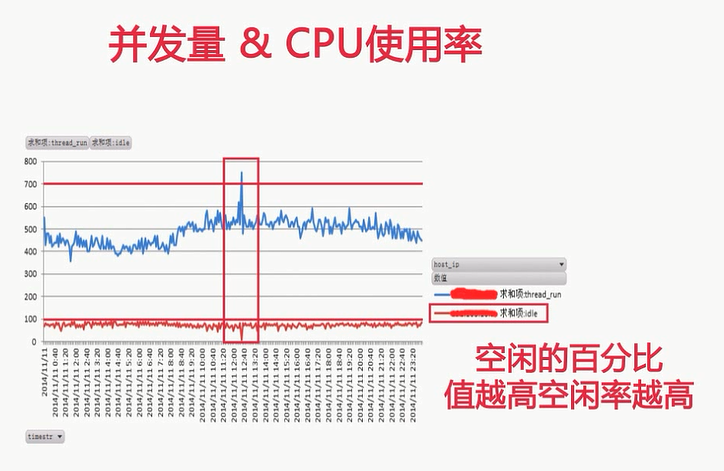 除了QPS和TPS之外呢,我们在看看下面一些监控图,这个监控图是对并发数量和CPU数量使用率来进行的一些监控