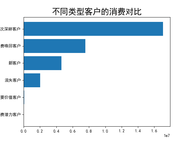 plt.title('不同类型客户的消费对比',fontsize=20)