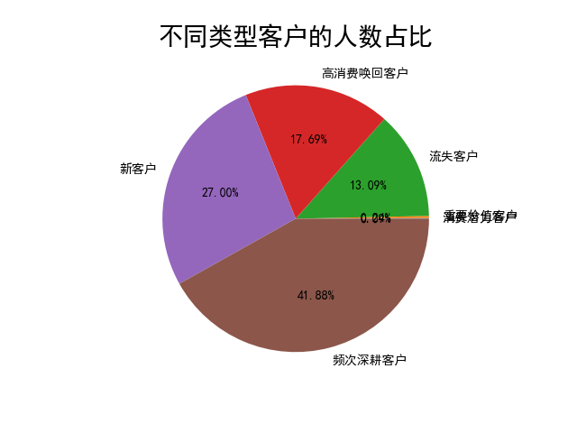 plt.title('不同类型客户的人数占比',fontsize=20)