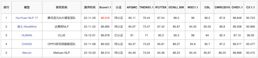 [19] 腾讯“混元”AI大模型登顶CLUE三大榜单,打破多项行业记录 http://ex.chinadaily.com.cn/exchange/partners/82/rss/channel/cn/columns/snl9a7/stories/WS628df605a3101c3ee7ad730e.html
