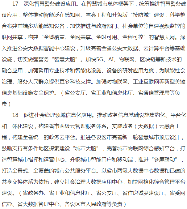 政府也要加强信息消费,比如深化智慧警务建设应用,推动智能泛在感知网、雪亮工程和升级版“技防城”建设。促进社会治理领域信息化应用,构建全省统一的政务云平台。