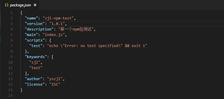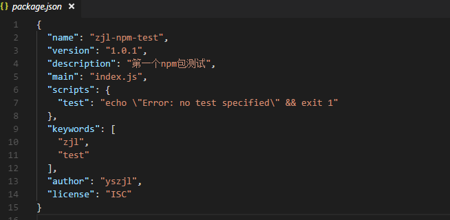 可以看到,在package.json中指定主入口文件为index.js,那么,就得在项目下创建一个名为index.js的文件。比如: