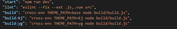 5、 通过 cross-env 插件,在package.json中新增打包命令, 并设置环境变量为对应样式文件路径名称部分