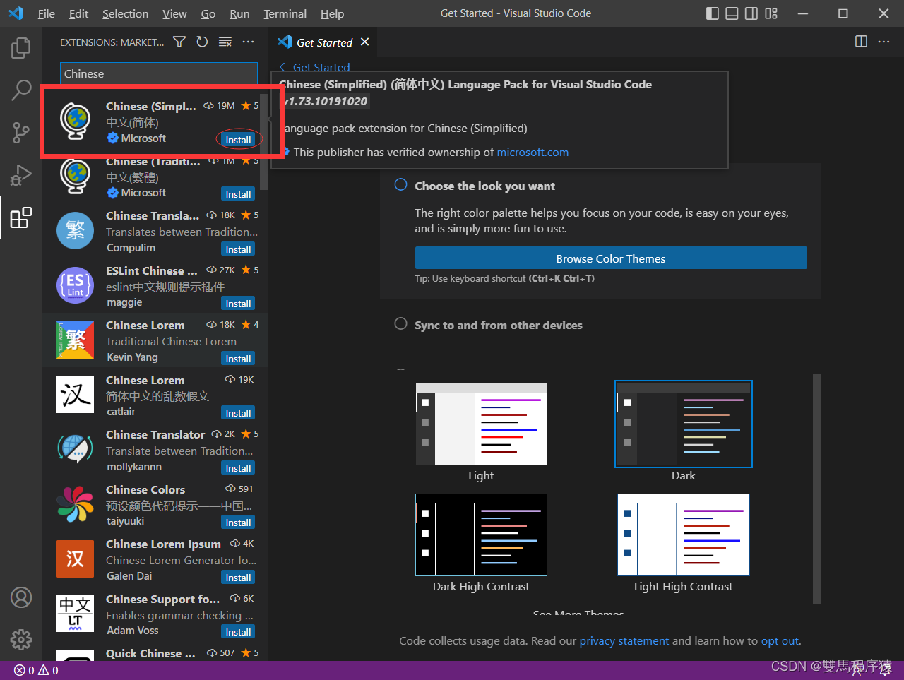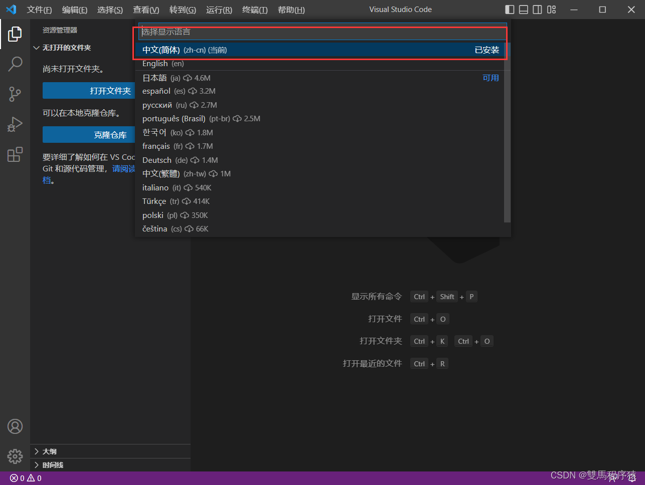 - 1.首先安装中文插件:Chinese (Simplified) Language Pack for Visual Studio Code