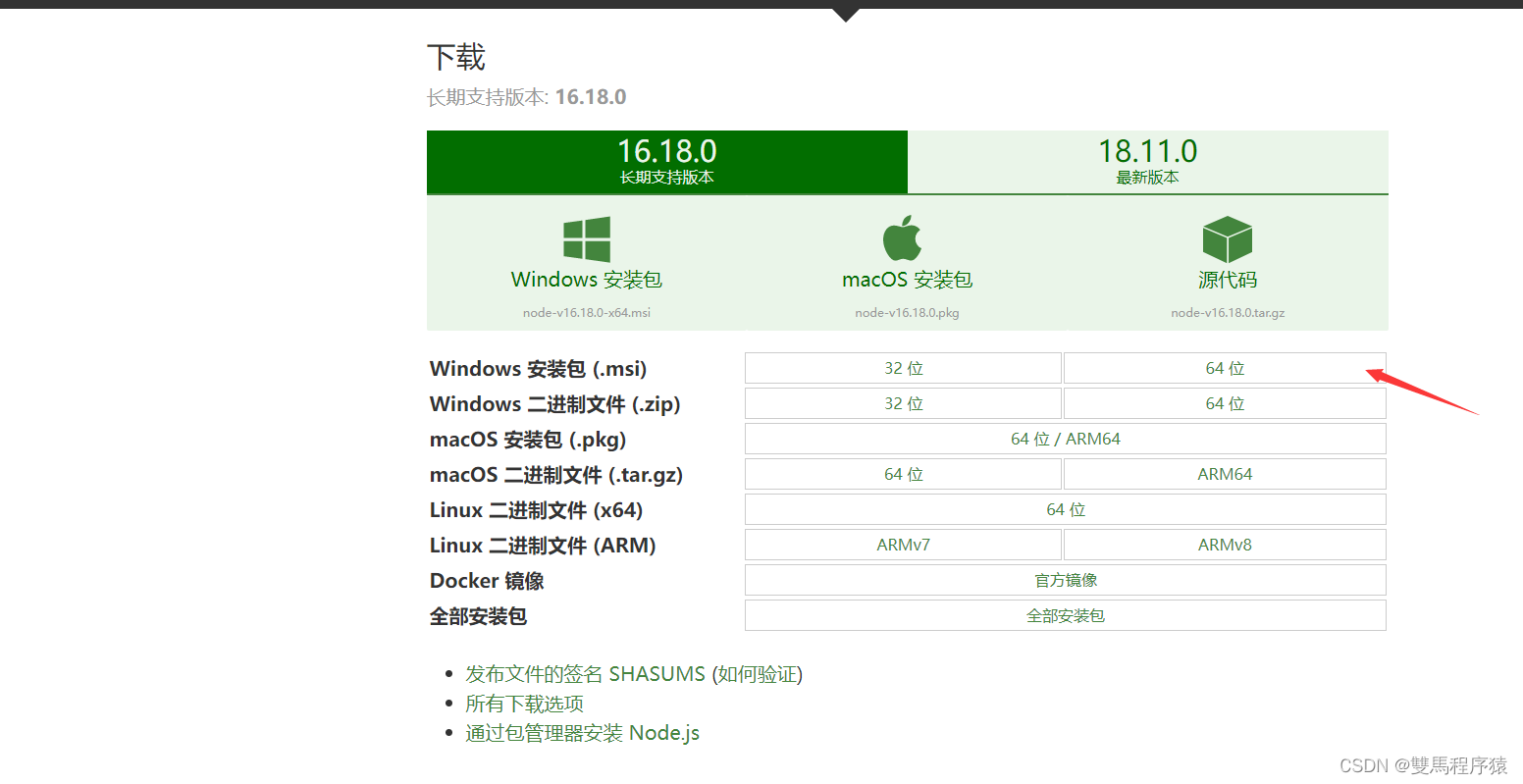 下载对应你系统的Node.js版本:
