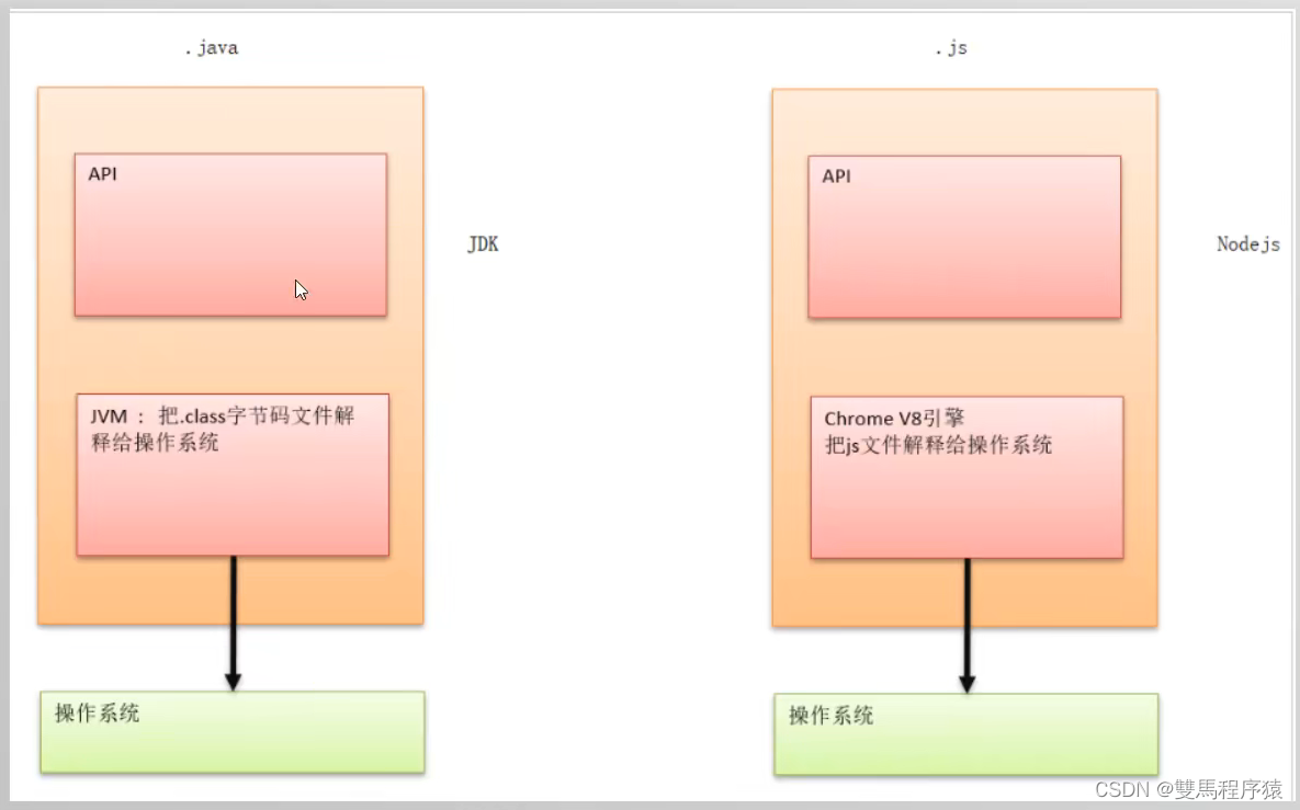 - 简单的说 Node.js 就是运行在服务端的 JavaScript。 Node.js 是一个基于Chrome JavaScript 运行时建立的一个平台。底层架构是:javascript. 文件后缀:.js。