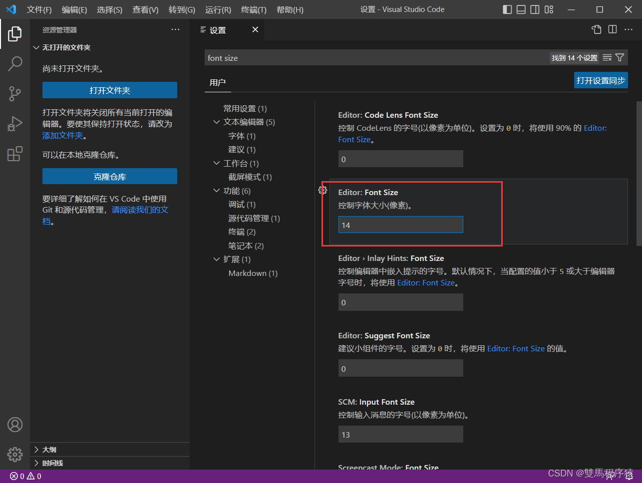左边栏Manage -> settings -> 搜索 “fonts” -> Font size