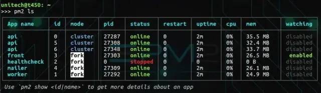 $ pm2 ls
