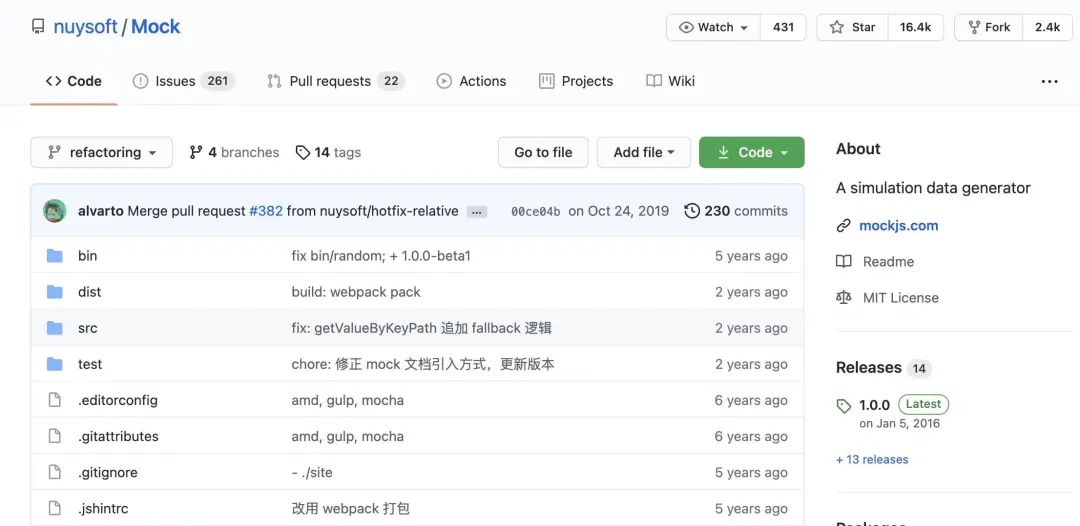 Mock.js[16] 是一个模拟数据生成器,可帮助前端开发和原型与后端进度分开,并减少某些单调性,尤其是在编写自动化测试时。