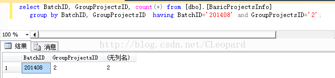 group by BatchID, GroupProjectsID having BatchID='201408' and GroupProjectsID='2';
