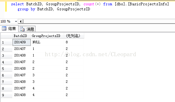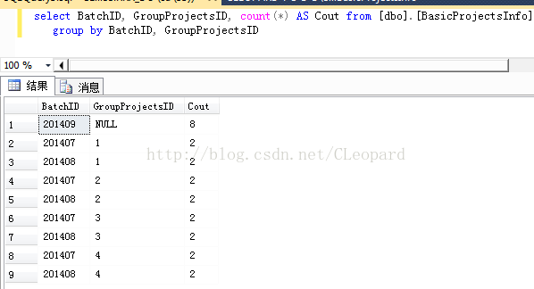 select BatchID, GroupProjectsID, count(*) AS Cout from [dbo].[BasicProjectsInfo]