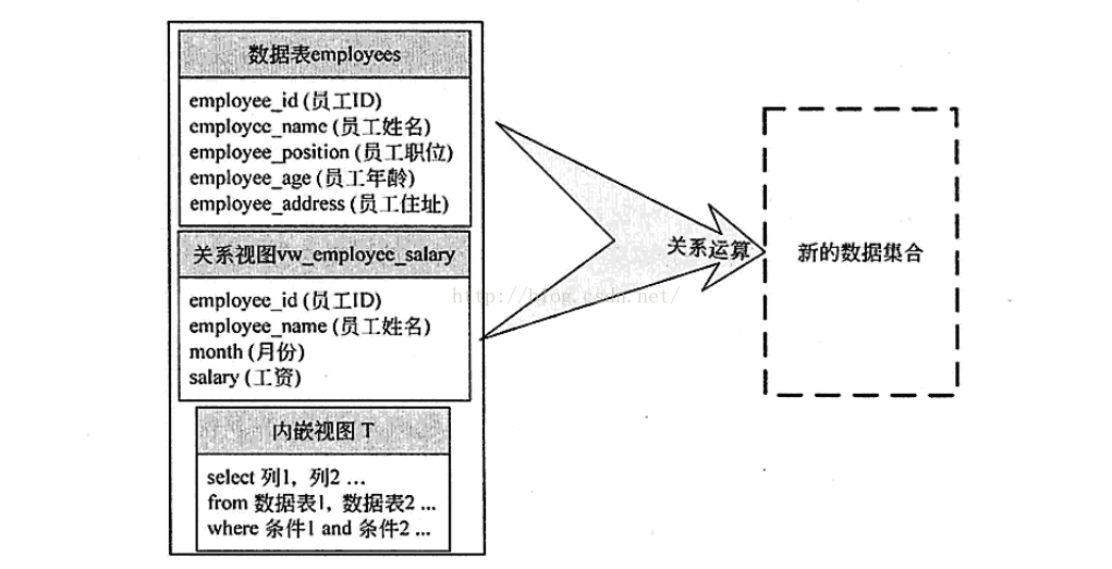 数据表和关系视图作为数据源,只需要出现对象名称即可,而内嵌视图则是以SQL查询语句的形式存在。