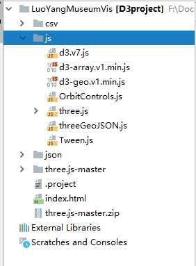 使用webstorm编写可视化网页,其中文件目录形式如下