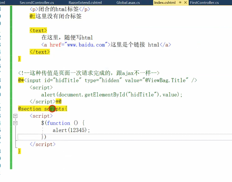 1、前端页面书写后台代码的形式