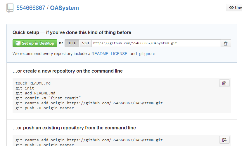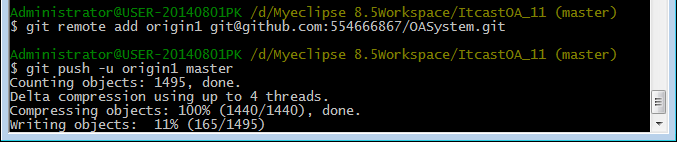 执行$ git remote add origin1 git@github.com:55466867/OASystem.git;