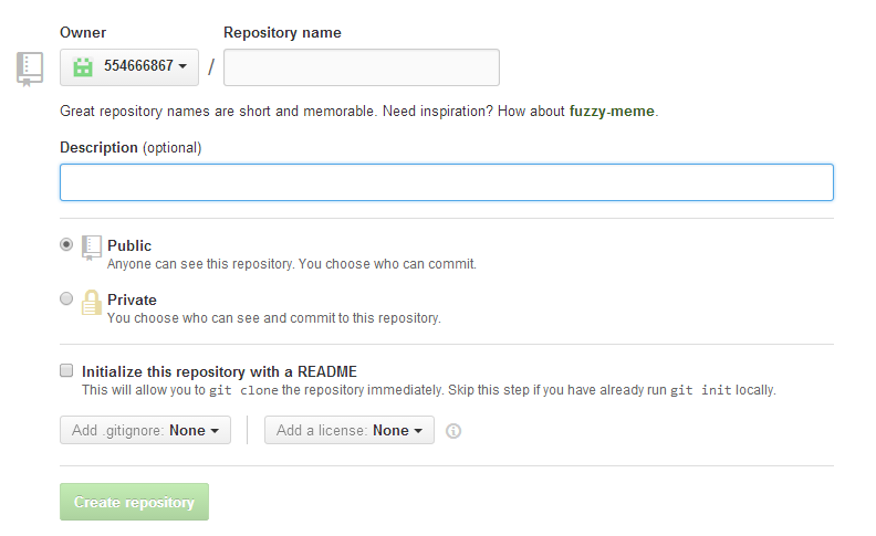 首先注册Github账号,然后创建仓库(repository),免费用于只能创建公开(public)的仓库。