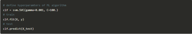 每个库都有自己的“实施细节”,即按照其编码模式编写的一种方法。例如,在执行scikit-learn时,首先创建所需算法的对象,然后在训练集上构建一个模型,并对测试集进行预测。例如: