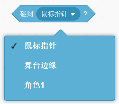 - 判断当前角色是否碰到鼠标,下拉可以选择其它角色和舞台边缘。