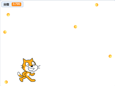 (5)当小猫碰上小球,小猫和小球全部消失,出现“游戏结束”四个字,游戏结束。