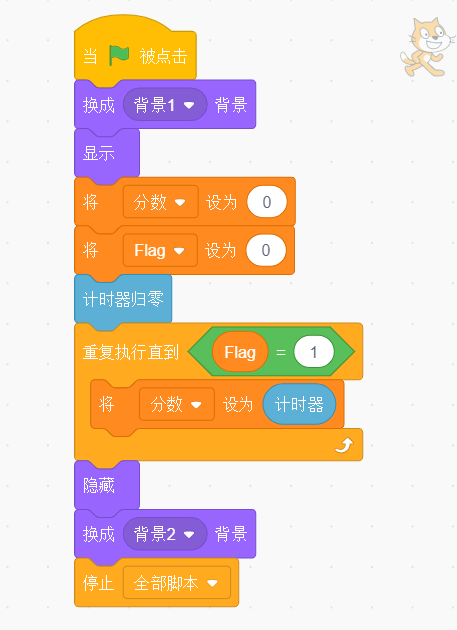 - 重复执行直到 Flag=1:(分数一直变化,是计时器的数值,时间越长,分数越高)