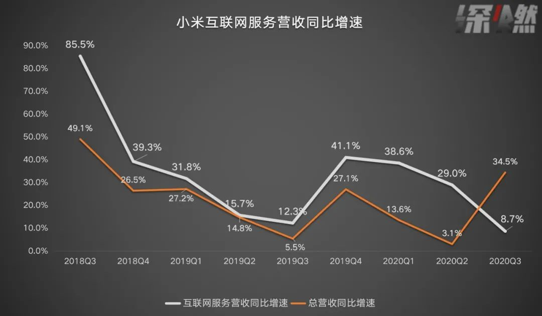 ▲ 小米互联网服务增速对比