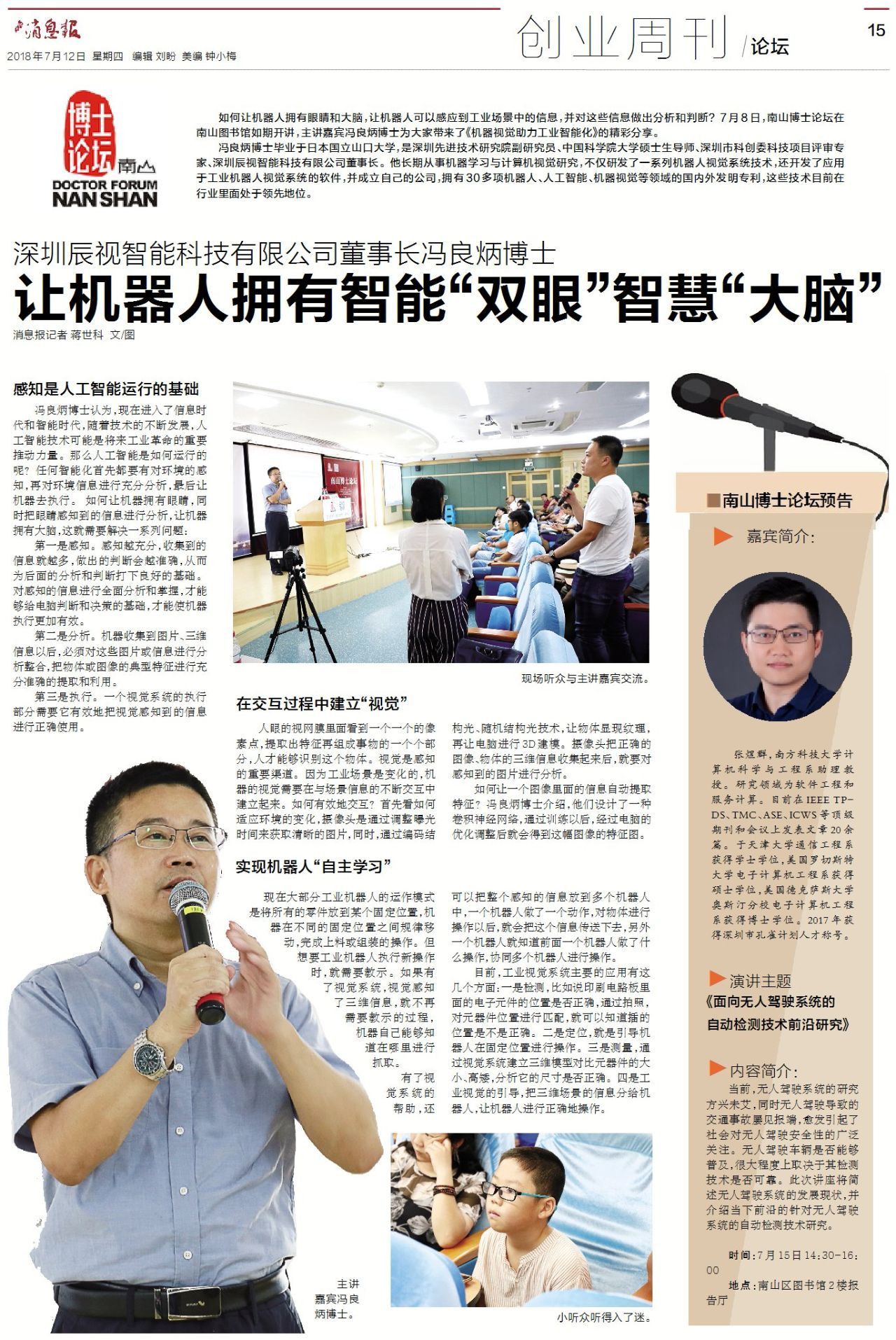 2018年7月8日下午,南山博士论坛在南山图书馆如期开奖,主讲嘉宾冯良炳博士为大家带来了《机器视觉助力工业智能化》的精彩分享。