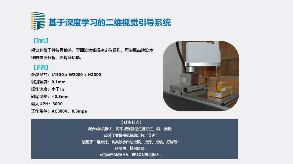 目前辰视研发的二维视觉引导系统和二维检测系统,三维视觉引导系统和三维视觉检测系统,均在行业里处于领先地位,在国际上也处于前沿的地位。