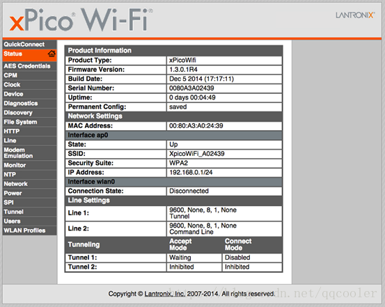 Lantronix xPico-WiFi模块支持OEM界面定制,客户可根据自己的要求,修改WiFi模块配置界面,Logo信息,产品信息等。