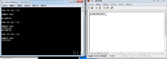 开始发送文件或者粘贴数据到串口调试工具发送框(secureCRT),在服务器端应该可以收到透传数据