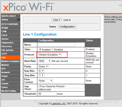 xPico-WiFi模块有两个串口,Line1和Line2分别是串口1和串口2。