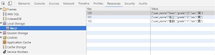 我们往localStorage里存入三条学生信息,并查看localStorage中的存储信息: