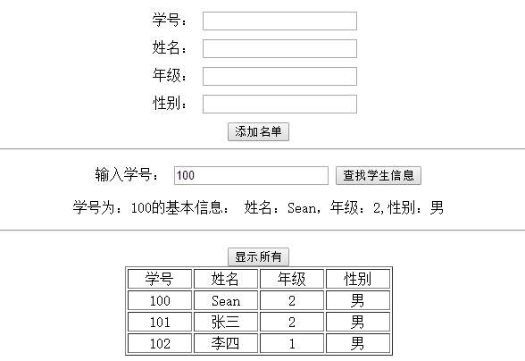•录入学生的基本信息(包括学号,姓名,年级,性别),以学号为key值来存储到local storage中;