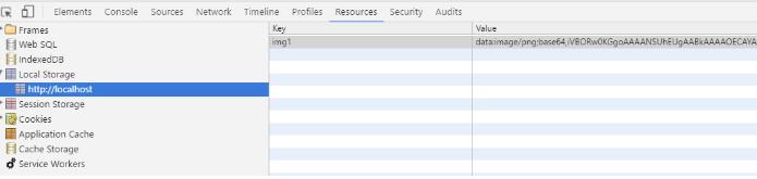 该函数接收两个参数,一个是key值,还有一个是图片的路径,通过setImg(“img1”,”1.jpg”)保存图片到localStorage,我们可以查看Local Storage的存储情况: