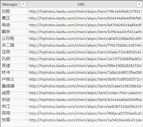 头像表URL:销售经理 Manager和一一对应的头像 URL地址。