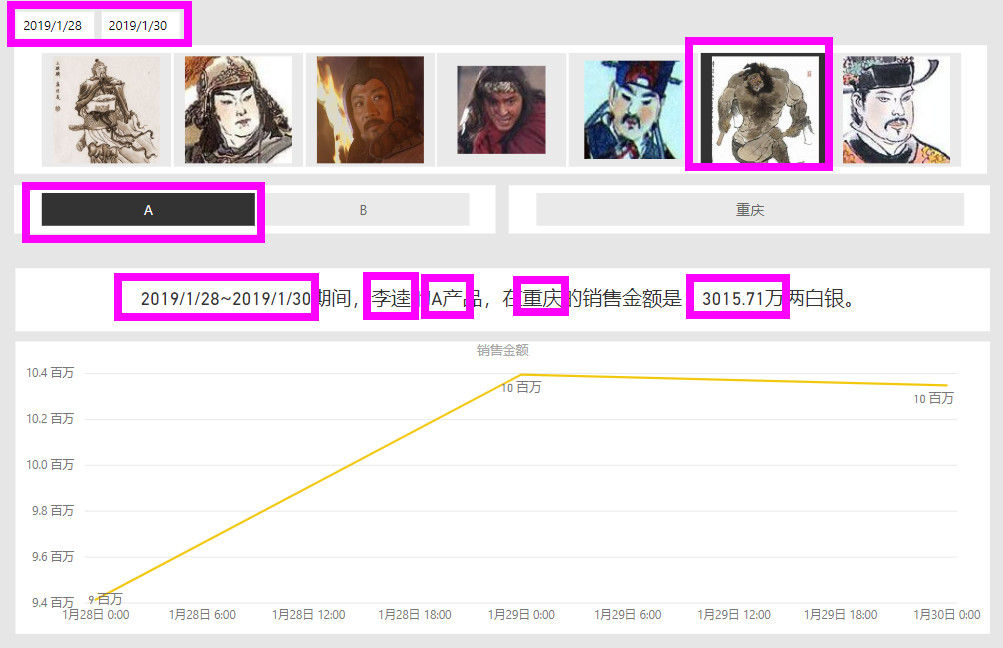 本文介绍如何用头像来表示每位经理(或者销售人员、BD、负责人、大堂经理……);并在不同筛选条件下,动态展示销售数据标签。